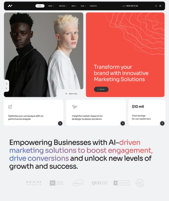 Wonderful and clean design will create an excellent base for starting the new agency. Especially when you don’t want to do design turnkey and are looking for something to help you make a fast and easy launch.